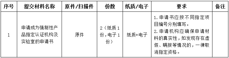 注:按照《国务院关于第二批清理规范192项国务院部门行政审批中介服务事项的决定》(国发〔2016〕11号)有关要求,我委已发布公告明确将审批条件中的“获得国家确定的认可机构的认可”调整为“申请指定的认证机构、实验室应符合国家标准中对认证机构、实验室技术能力的通用要求”。